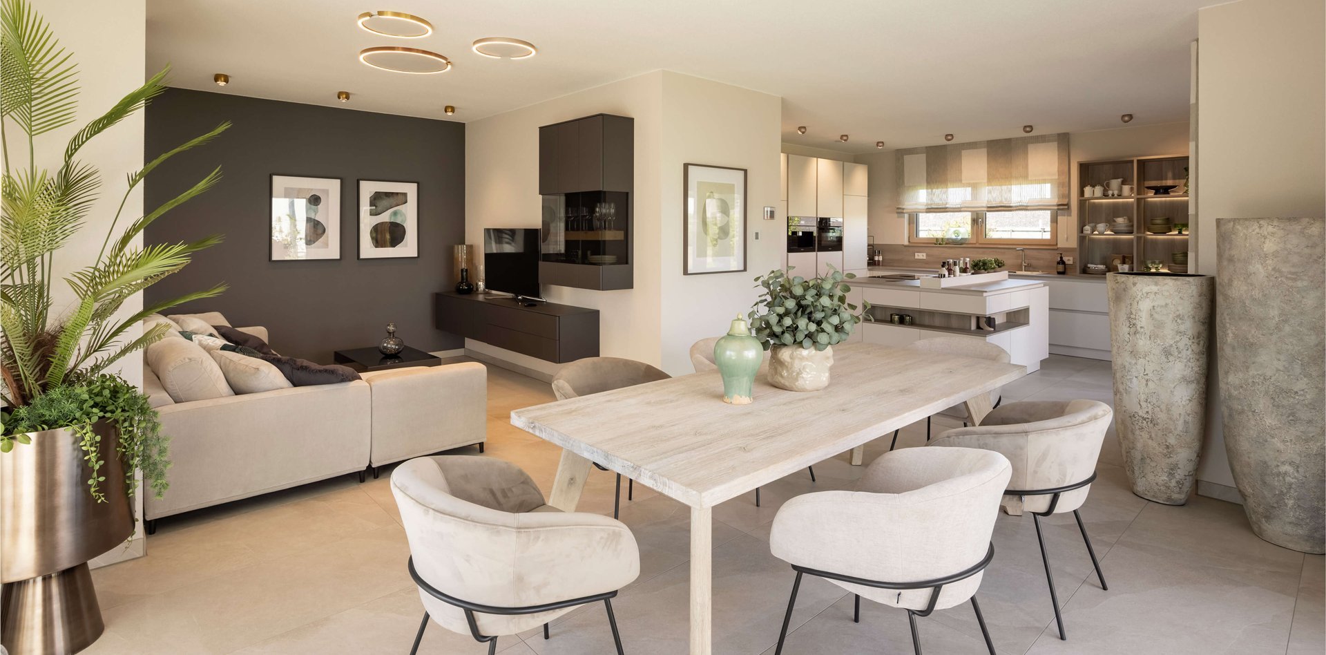 Das eigene Zuhause ist einer der wichtigsten Orte. Hier kommen wir zur Ruhe, wollen uns wohlfühlen und die Seele baumeln lassen. Die Innengestaltung eines Hauses kann eine aufregende und kreative Aufgabe sein. Denken Sie daran, dass das Einrichten dabei ein fortlaufender Prozess ist. Seien Sie experimentierfreudig und probieren Sie verschiedene Arrangements und Stile aus, um den Raum nach und nach zu perfektionieren. Lassen Sie sich von Ihrem persönlichen Geschmack und Ihrer Kreativität leiten, um einen Raum zu schaffen, der sowohl funktional als auch ästhetisch ansprechend ist.